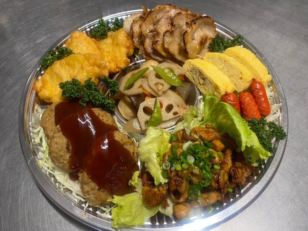 人気メニューのとり天弁当、ハラミ丼をはじめ、ご家族でシェアできるボリューム満点のお弁当が自慢です。複数のおかずを盛り合わせたお弁当はまるで「オードブル+ごはん」といった感じです。お弁当はもとより、慶事・仏事・飲み会などのイベントやご家族でのお食事にオードブルも承ります。ぜひ、ご利用ください。